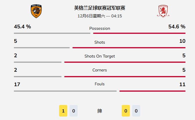 赫尔城在寻找扳回比分的办法时,始终无法持续施压,而随着上半场比赛的进行,米德尔斯堡似乎更有可能再次进球。
